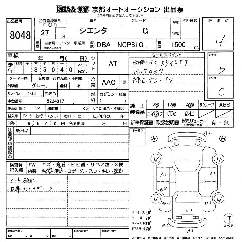 TOYOTA SIENTA G - лот 8048