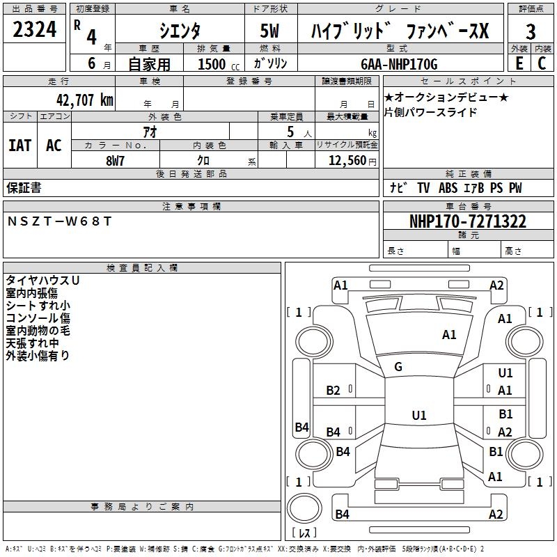 TOYOTA SIENTA HYBRID FAN BASE X - лот 2324