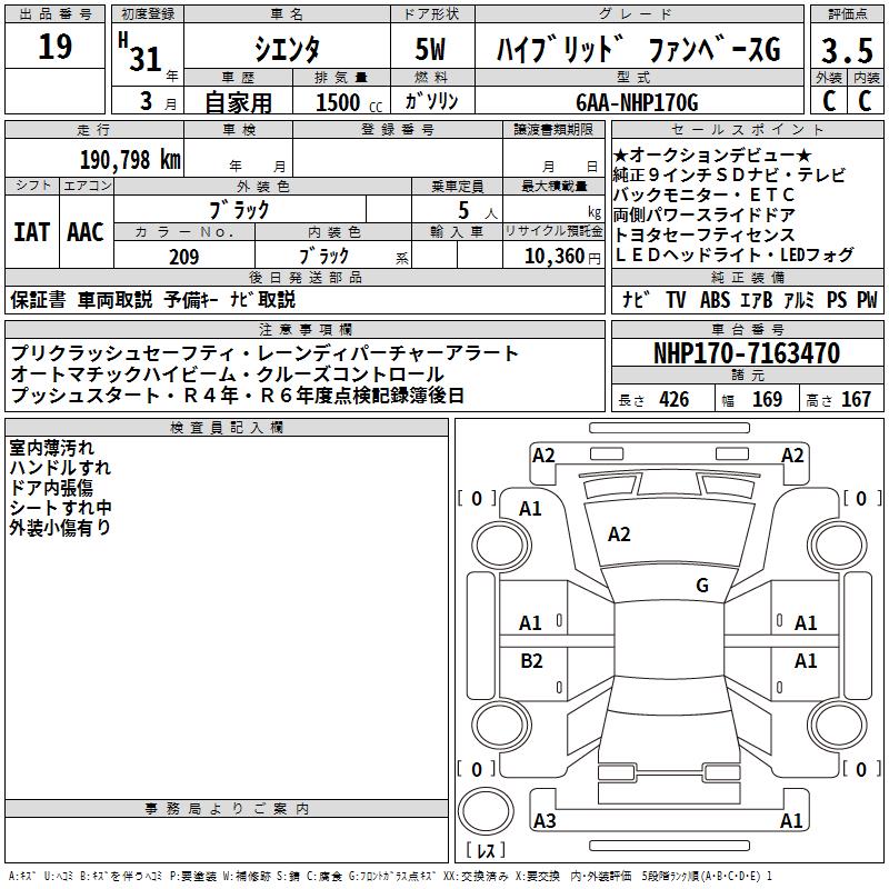 TOYOTA SIENTA HYBRID FAN BASE G - лот 19