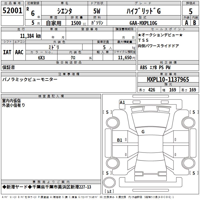 TOYOTA SIENTA HYBRID G - лот 52001