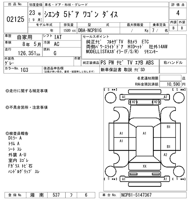 TOYOTA SIENTA DICE - лот 2125