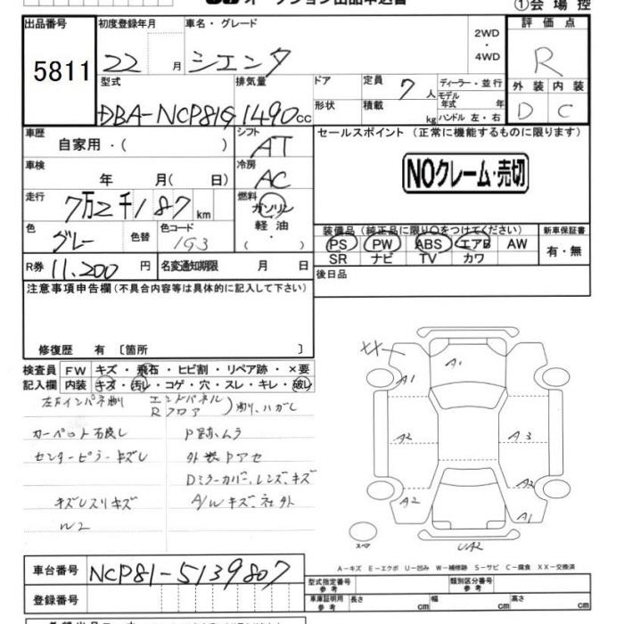 TOYOTA SIENTA - лот 5811