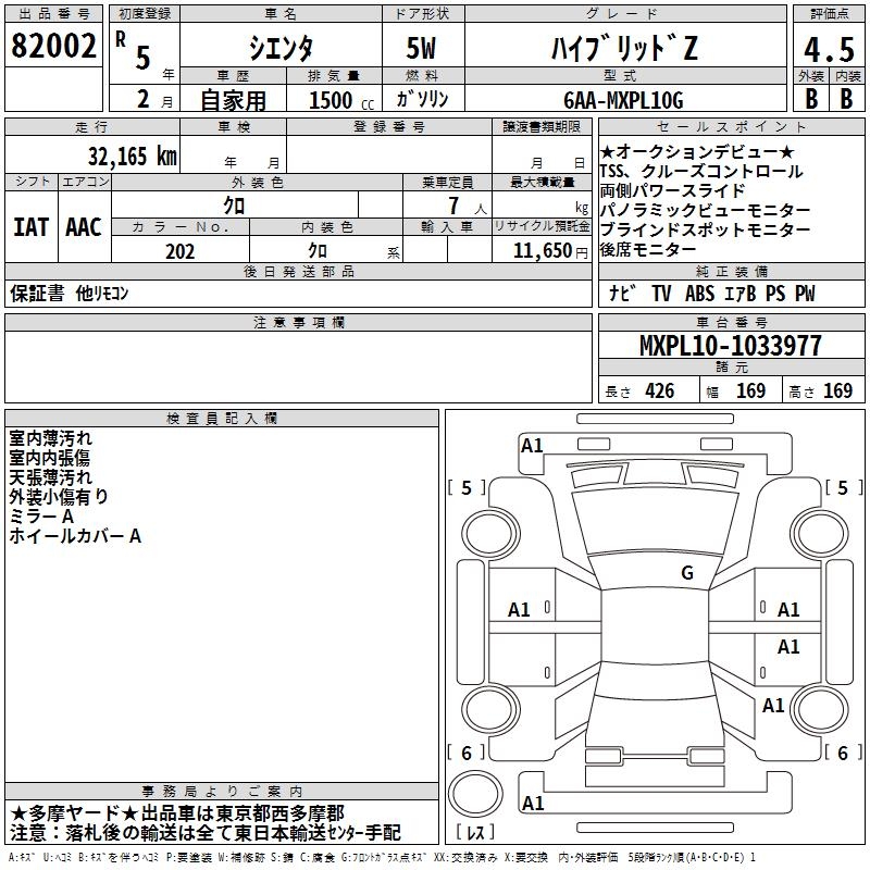 TOYOTA SIENTA HYBRID Z - лот 82002