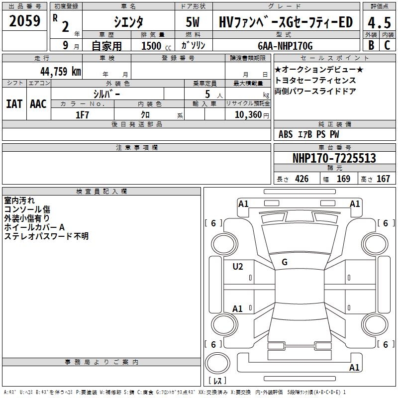 TOYOTA SIENTA HV FAN BASE G SAFETY -ED - лот 2059