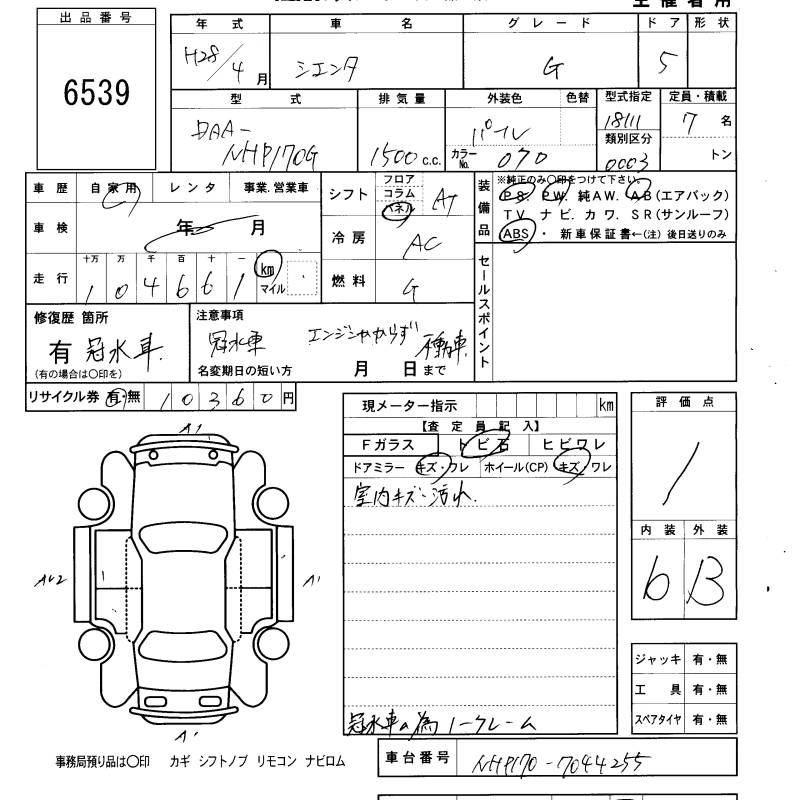 TOYOTA SIENTA G - лот 6539