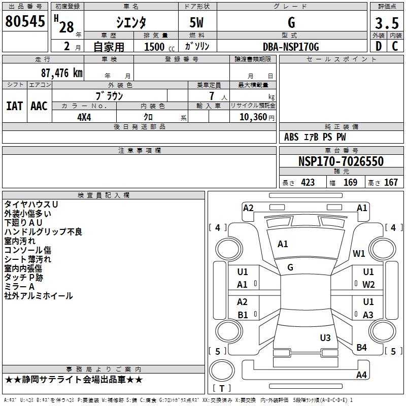 TOYOTA SIENTA G - лот 80545