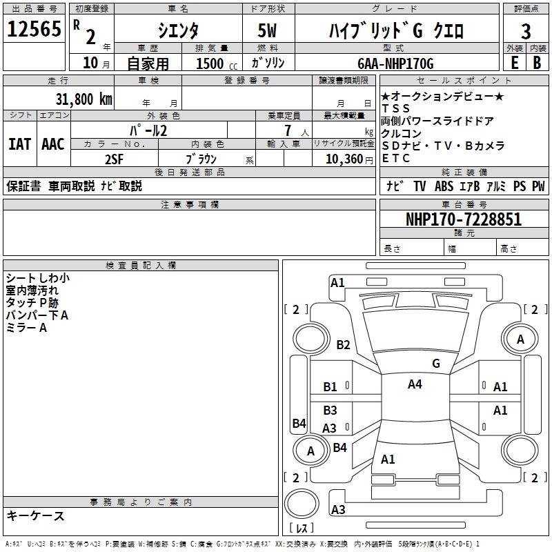 TOYOTA SIENTA HYBRID GKERO - лот 12565