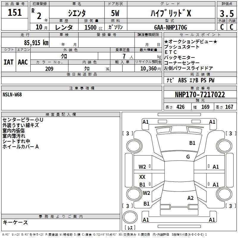 TOYOTA SIENTA HYBRID X - лот 151