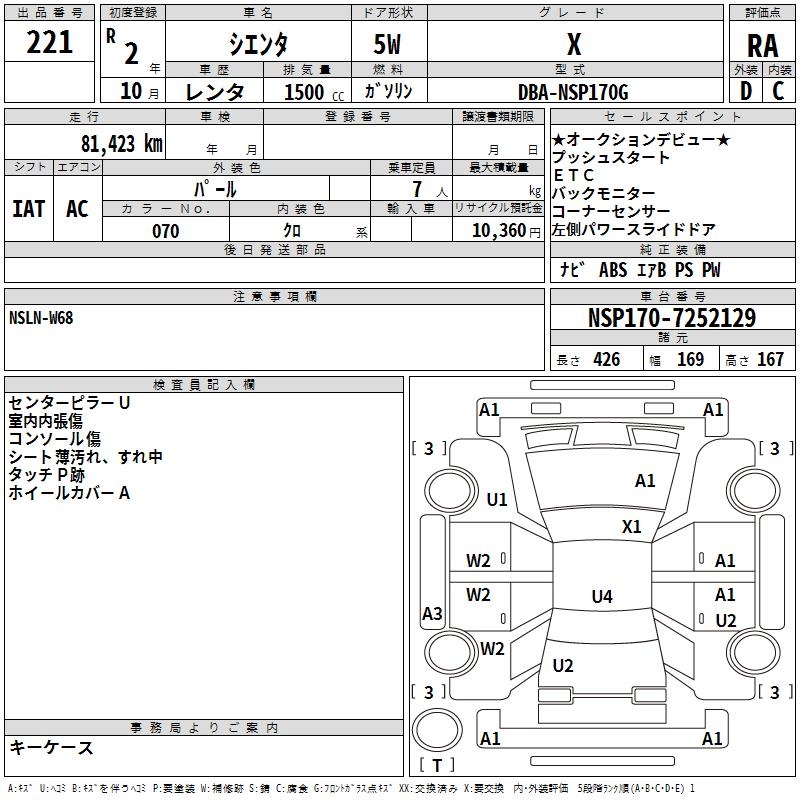 TOYOTA SIENTA X - лот 221