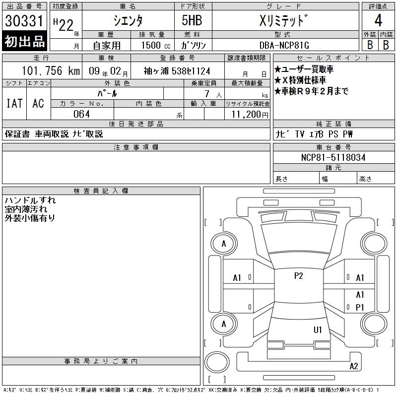 TOYOTA SIENTA X LIMITED - лот 30331