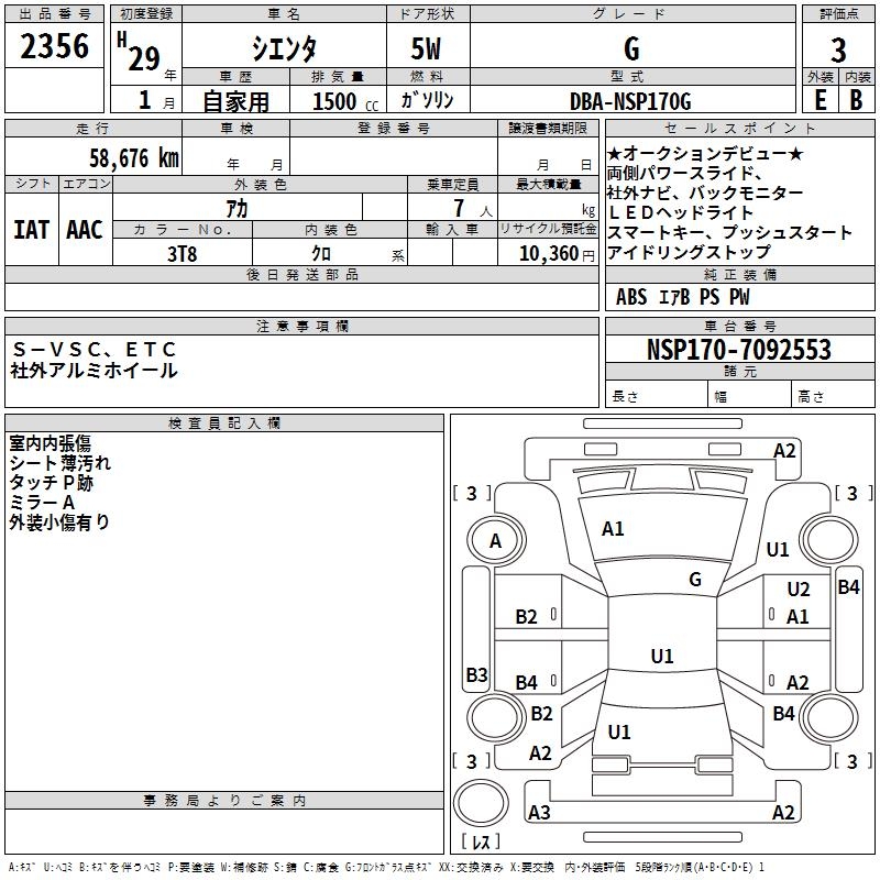 TOYOTA SIENTA G - лот 2356