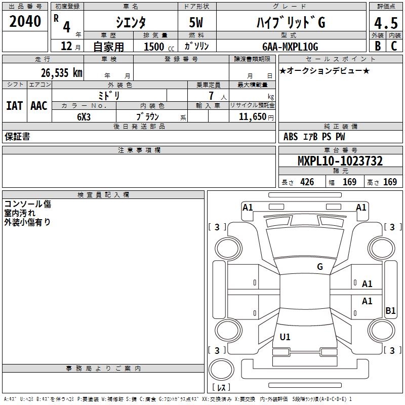 TOYOTA SIENTA HYBRID G - лот 2040