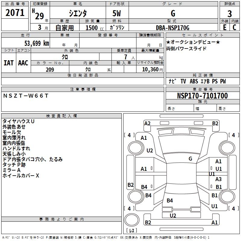 TOYOTA SIENTA G - лот 2071