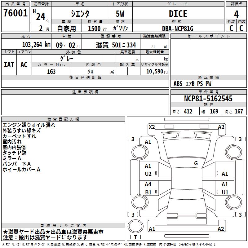 TOYOTA SIENTA DICE - лот 76001