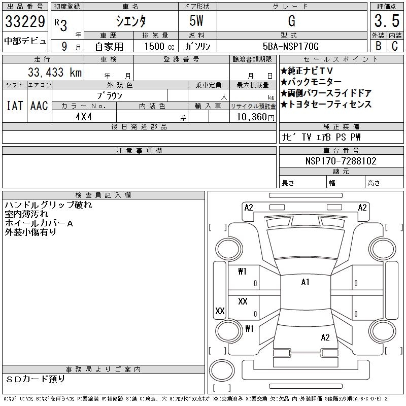 TOYOTA SIENTA G - лот 33229