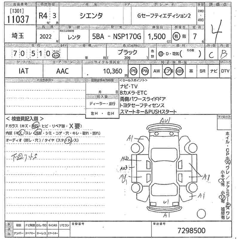 TOYOTA SIENTA G SAFETY EDITION 2 - лот 11037