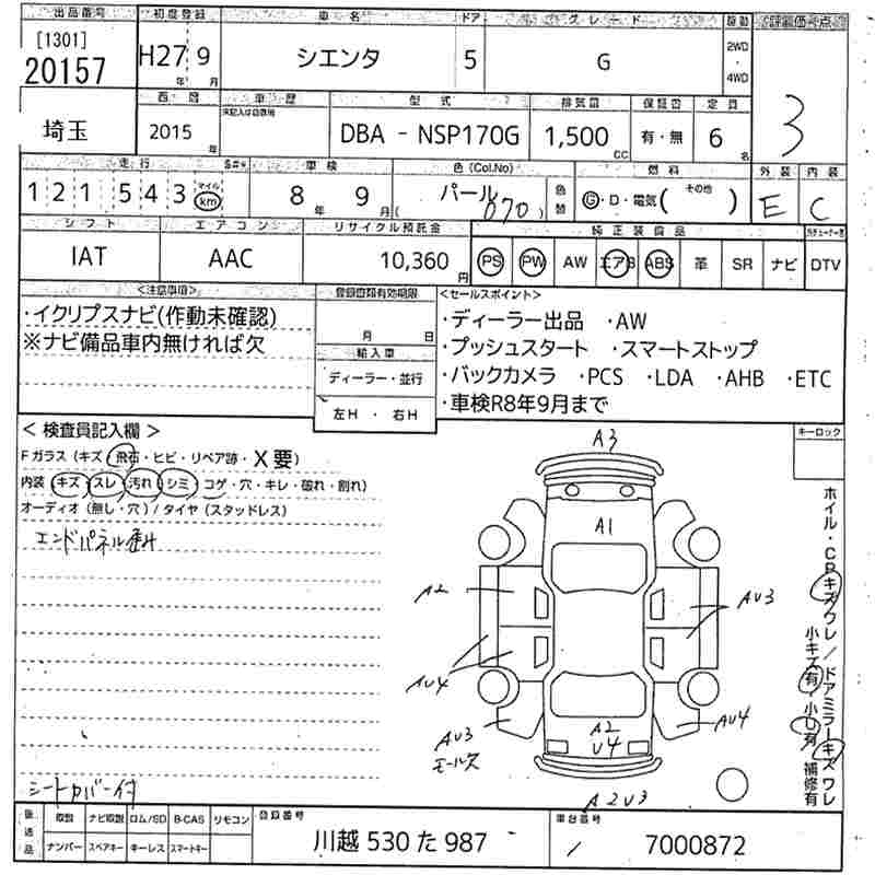 TOYOTA SIENTA G - лот 20157