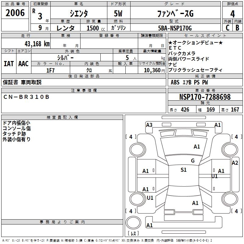 TOYOTA SIENTA FAN BASE G - лот 2006