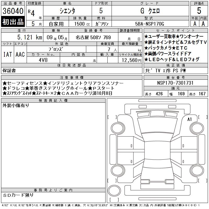 TOYOTA SIENTA GKERO - лот 36040