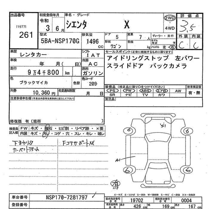 TOYOTA SIENTA X - лот 261