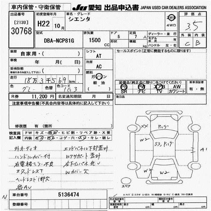 TOYOTA SIENTA - лот 30768