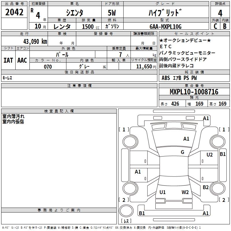 TOYOTA SIENTA HYBRID - лот 2042
