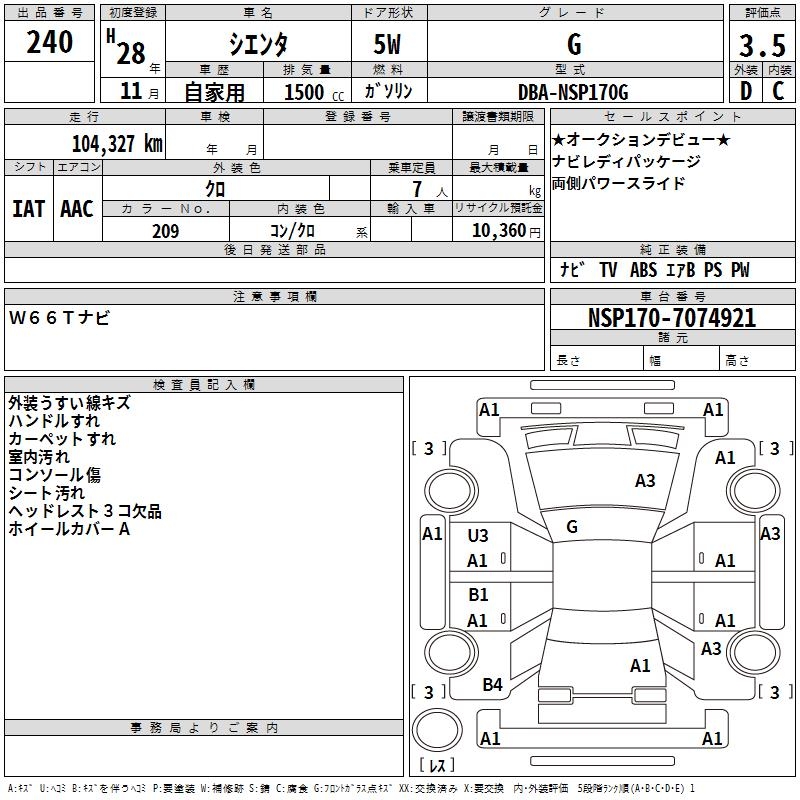 TOYOTA SIENTA G - лот 240