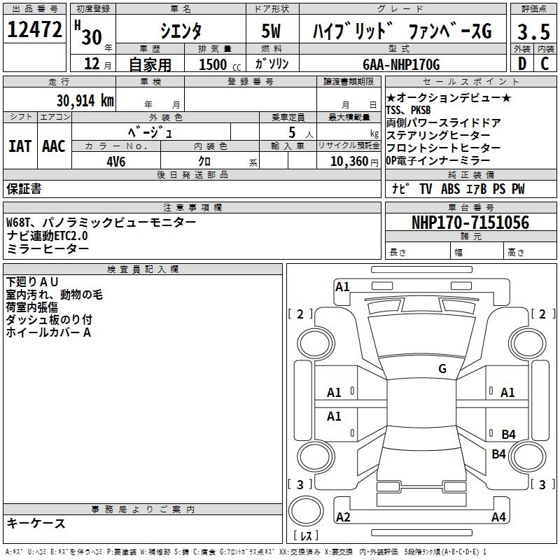 TOYOTA SIENTA HYBRID FAN BASE G - лот 12472