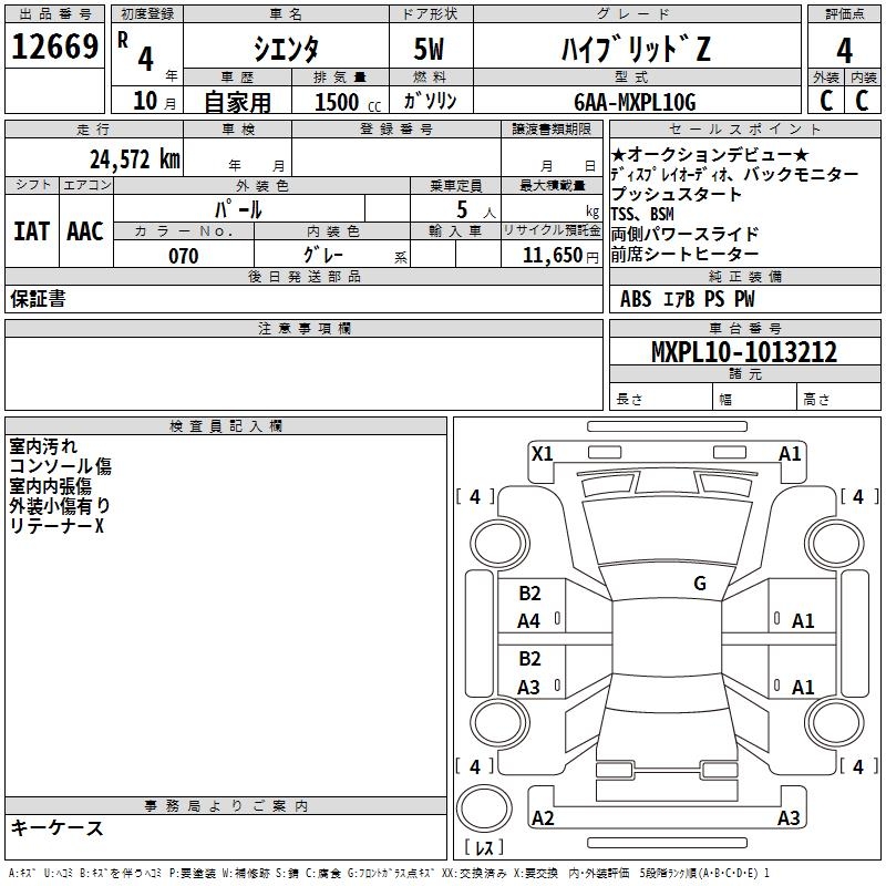 TOYOTA SIENTA HYBRID Z - лот 12669