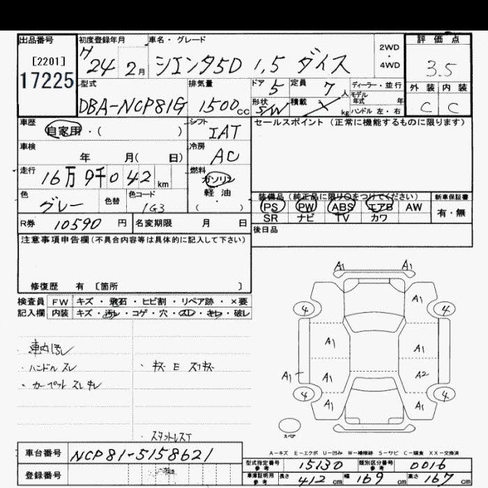 TOYOTA SIENTA DICE - лот 17225