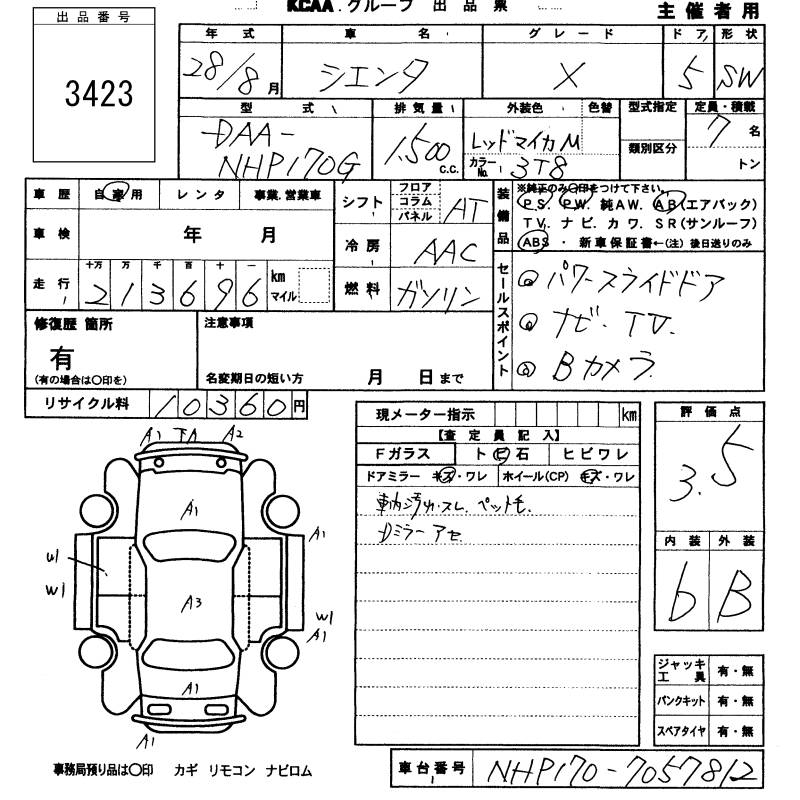 TOYOTA SIENTA X - лот 3423