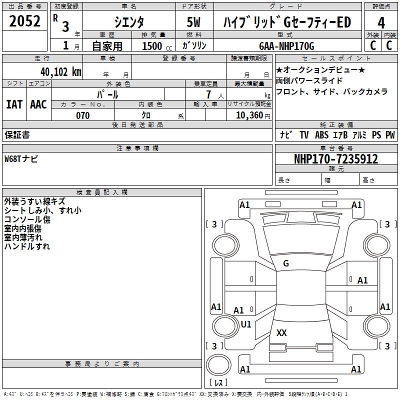 TOYOTA SIENTA HYBRID G SAFETY -ED - лот 2052
