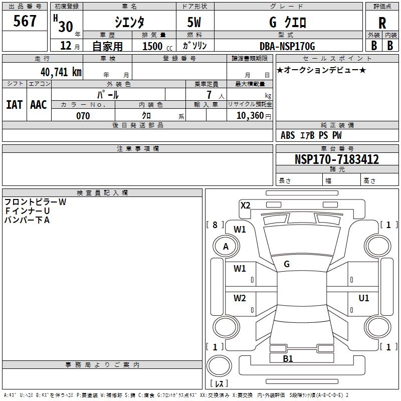 TOYOTA SIENTA GKERO - лот 567