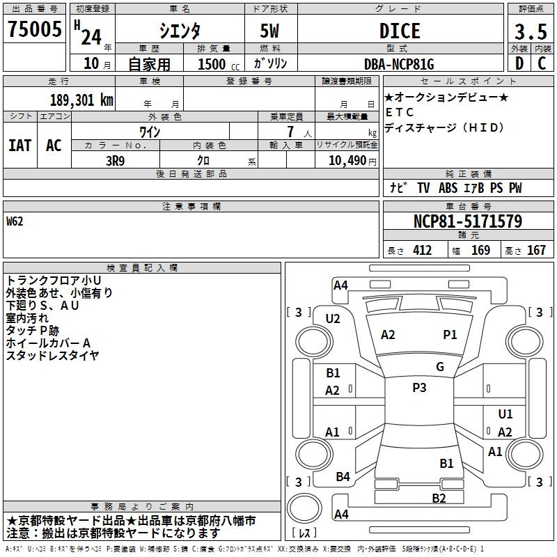 TOYOTA SIENTA DICE - лот 75005