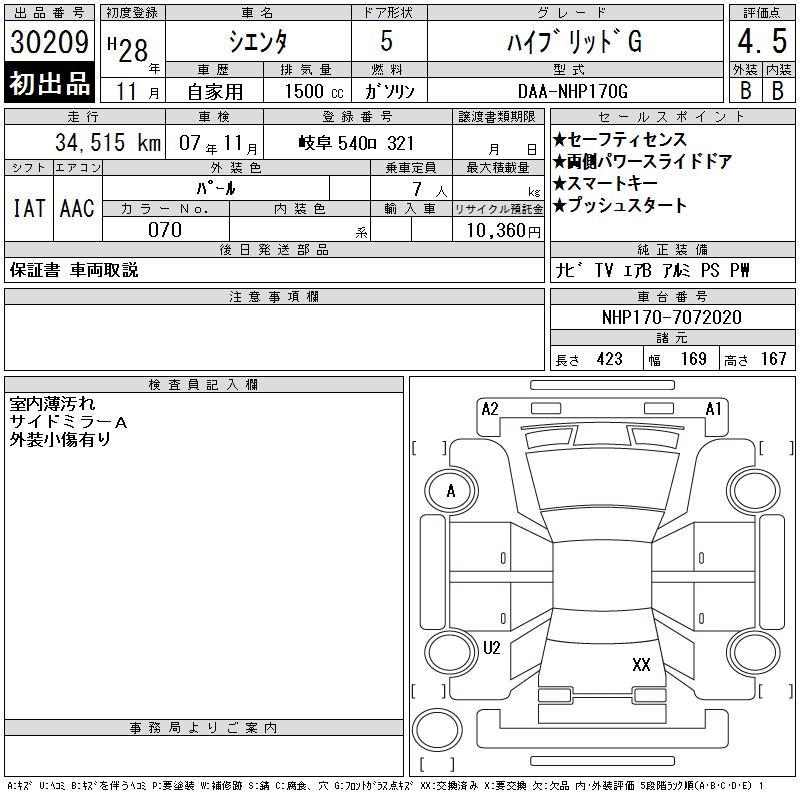 TOYOTA SIENTA HYBRID G - лот 30209