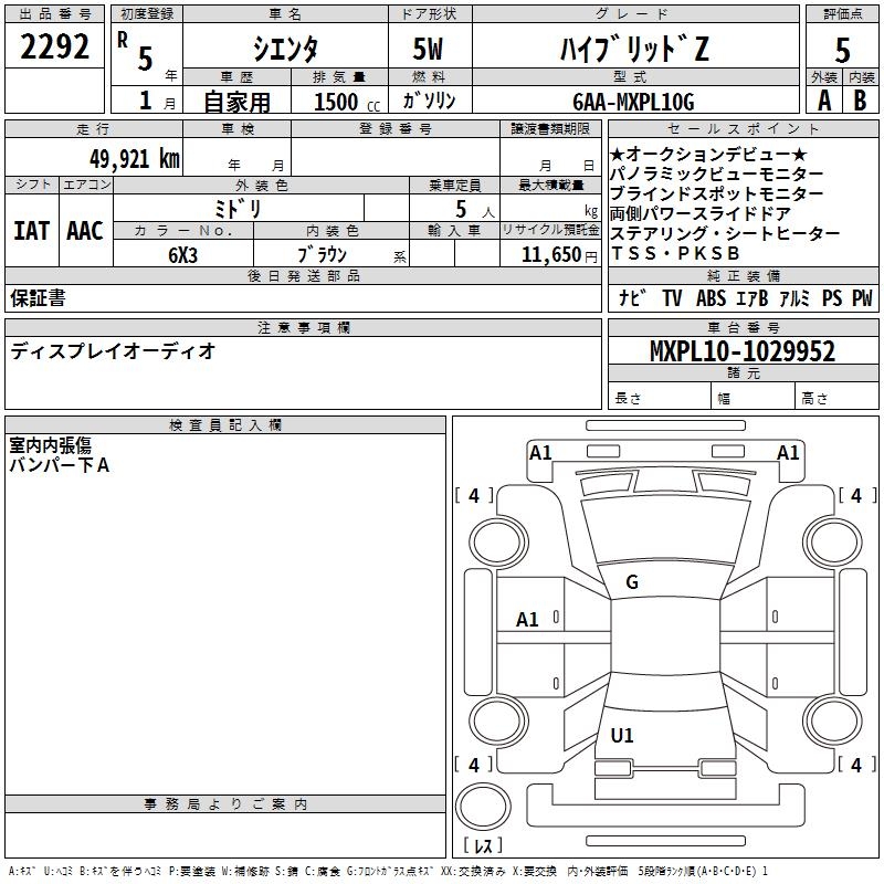 TOYOTA SIENTA HYBRID Z - лот 2292
