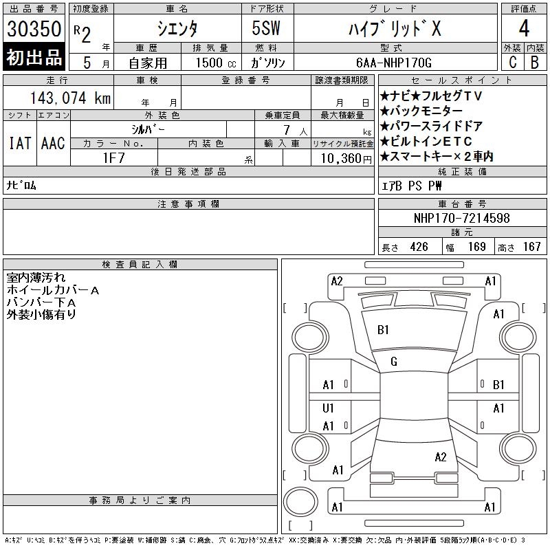TOYOTA SIENTA HYBRID X - лот 30350