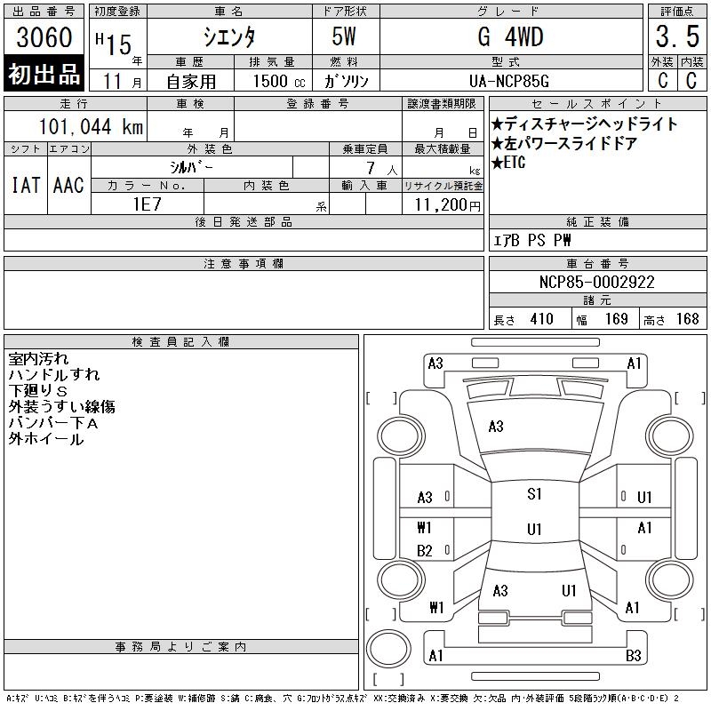 TOYOTA SIENTA G 4WD - лот 3060