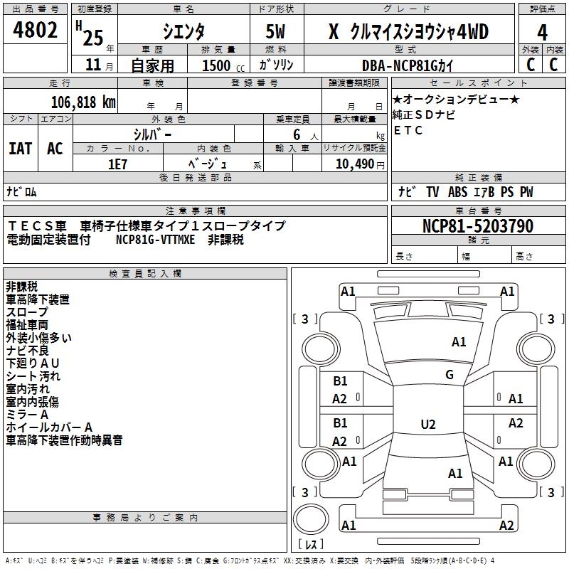 TOYOTA SIENTA XKRU MY S USE CAR 4WD - лот 4802