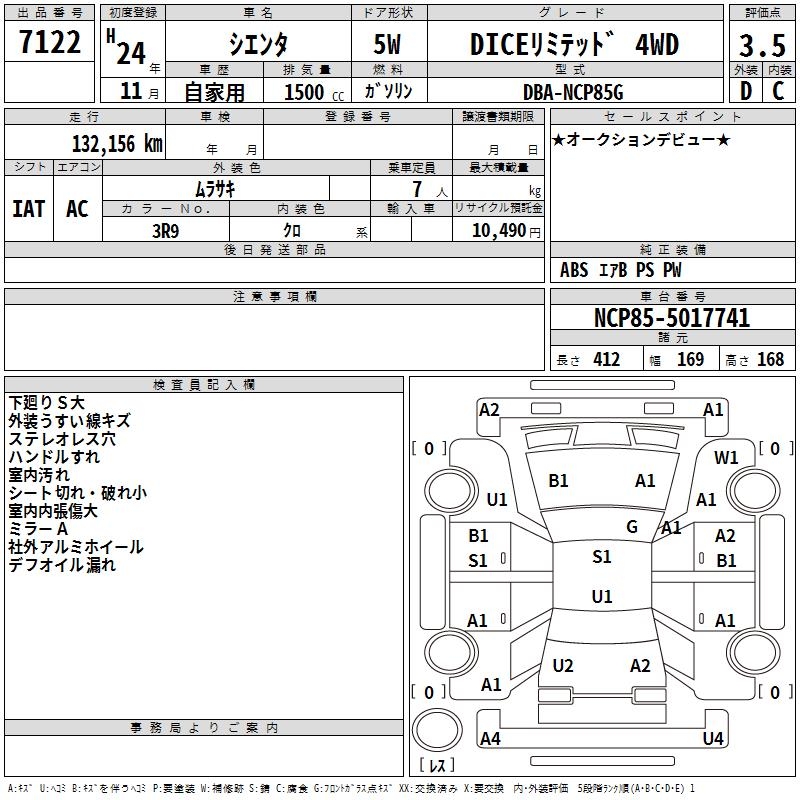 TOYOTA SIENTA DICE LIMITED 4WD - лот 7122