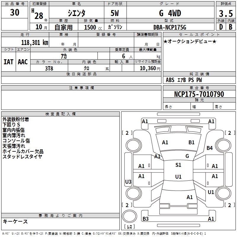 TOYOTA SIENTA G 4WD - лот 30