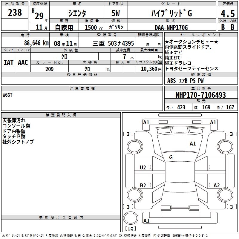 TOYOTA SIENTA HYBRID G - лот 238