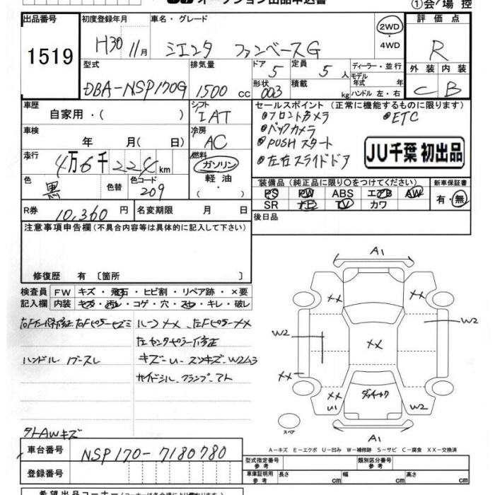 TOYOTA SIENTA FAN BASE G - лот 1519