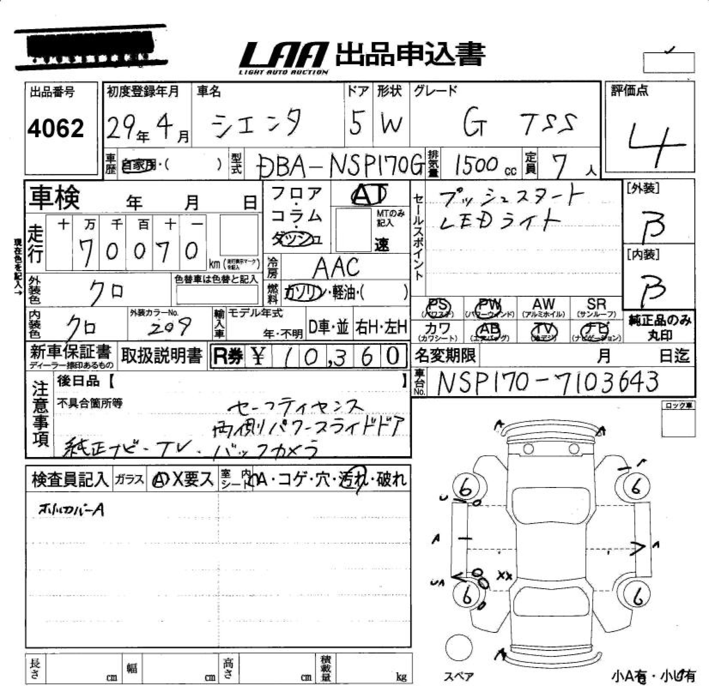 TOYOTA SIENTA G TSS - лот 4062