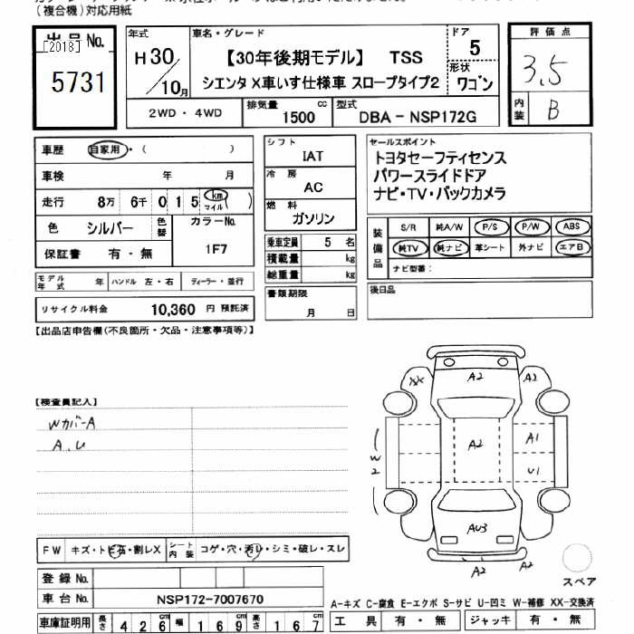 TOYOTA SIENTA XKRU MY S USE CAR SLOPE TYPE 2 TSS - лот 5731