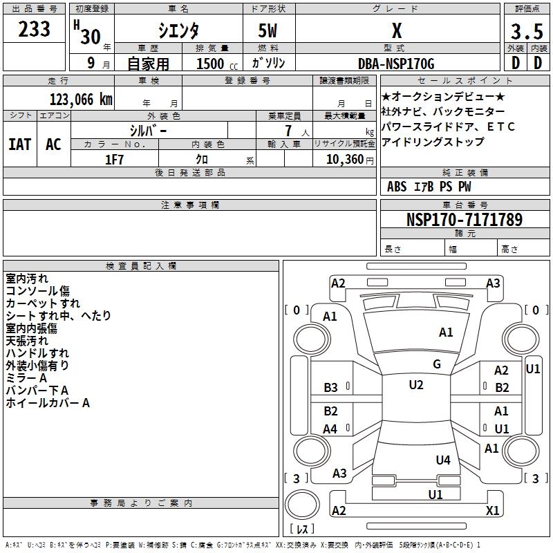 TOYOTA SIENTA X - лот 233