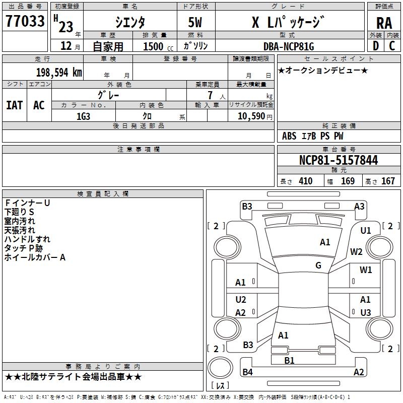 TOYOTA SIENTA X L PACKAGE - лот 77033