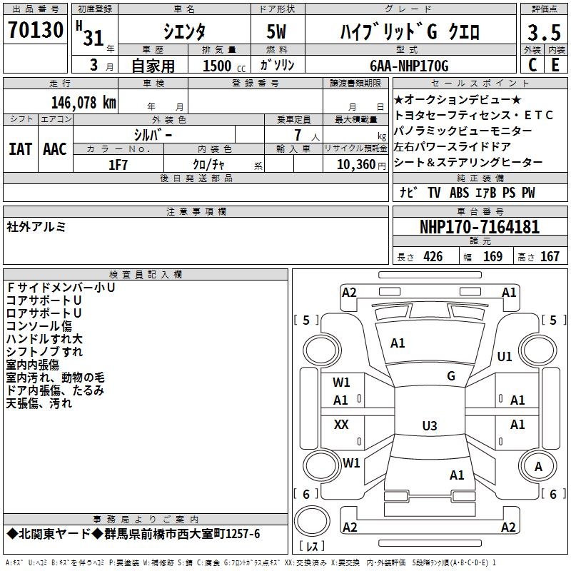 TOYOTA SIENTA HYBRID GKERO - лот 70130