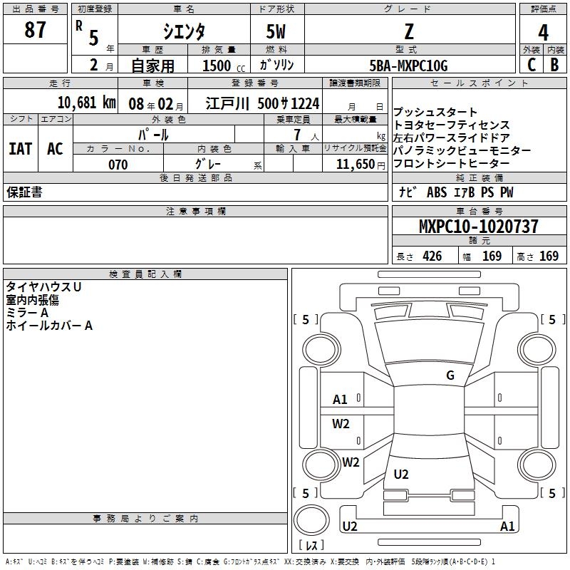 TOYOTA SIENTA Z - лот 87