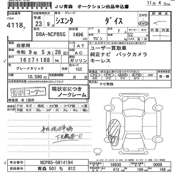 TOYOTA SIENTA 4WD DICE - лот 4118